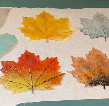 Celebrate the colors of fall with organic shapes. Vibrantly colored leaves can be replicated with glass power sifted into ceramic molds.
