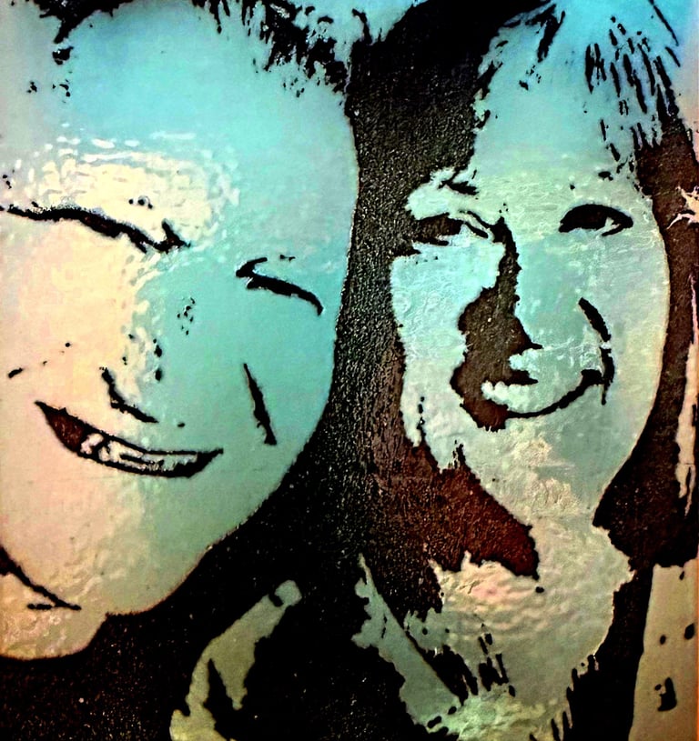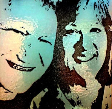 Using Cricut stencils, we sift black powdered glass onto a glass panel (can be clear or colored) for artsy portraits sure to amaze.