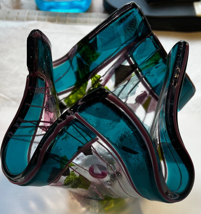 Create beautiful, timeless vessels by recycling tempered glass. We break and arrange pieces into a mold for firing in the kiln. Gorgeous!